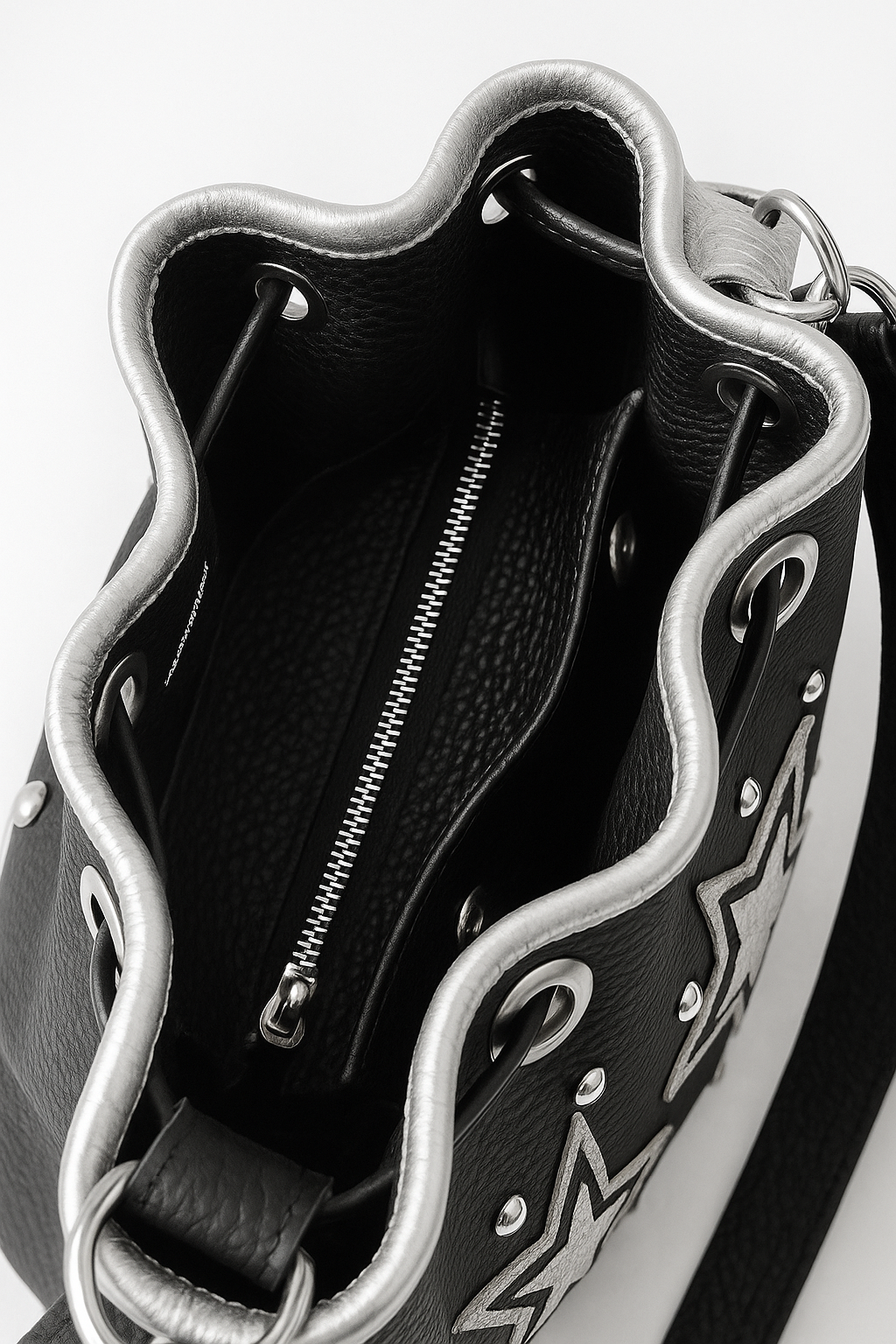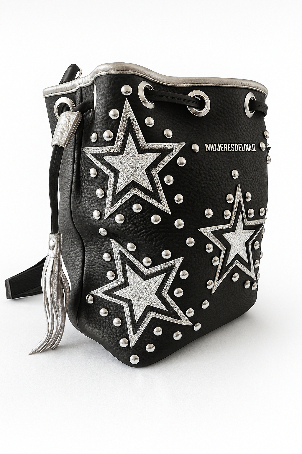 Cartera / mochila multifuncional de cuero original 100% con estrellas de strass
