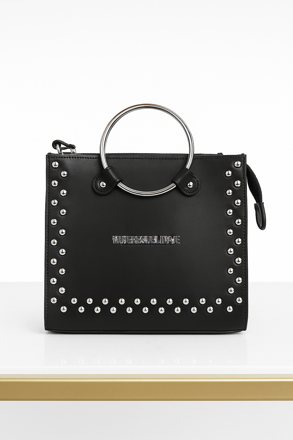 Manijas: Metálicas circulares de alto brillo, resistentes y elegantes.